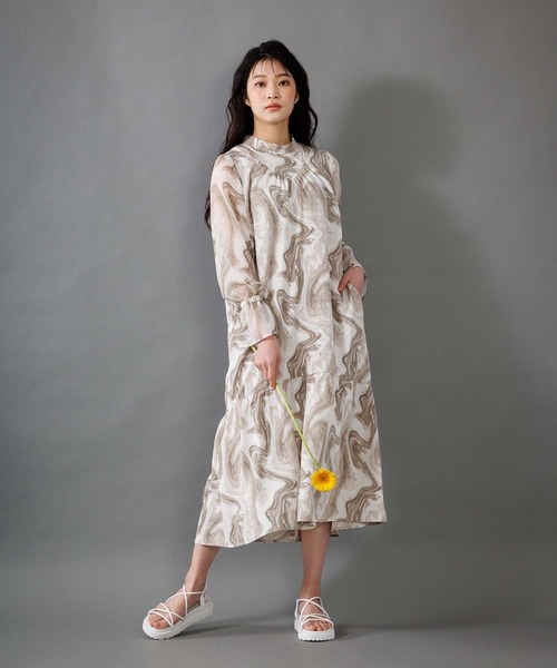 | 商品の特徴 | アイテム説明■商品説明ニュアンスマーブルのプリントワンピース。 袖部分は同じマーブル柄の、透け感のある楊柳素材で切り替えました。ギャザーはボリュームと甘さが出過ぎないよう控えめに入れています。ポケット付きなのも嬉しいポイント。裾も袖も揺れる動きが可愛い、春から夏にかけてぴったりのワンピースです。■使用上の注意濃色の物は汗や雨でぬれた時、又は強い摩擦により色移りすることがあります。濡れた状態での放置重ね置きはしないで下さい。軽く押し洗いをして下さい。あて布使用。===========================厚み:薄い伸縮性:なし裏地:あり透け感:なし(見頃)、あり(袖)生地感:ソフト洗濯:手洗い可===========================【Anside/アンサイド】遊び心のあるデザインディティール, 色彩豊かなバリエーションで心躍る毎日を・・・。自分のスタイルや着こなしを大切にしたい女性におくる大人モードカジュアル。環境に配慮しつつ、長く大切に着て貰える“タフだけど、ラフ過ぎない”リアルクローズを提案します。アイテム詳細サイズMカテゴリーワンピース/ドレス,ワンピースキーワード長袖(袖丈),その他総柄(柄) | ||