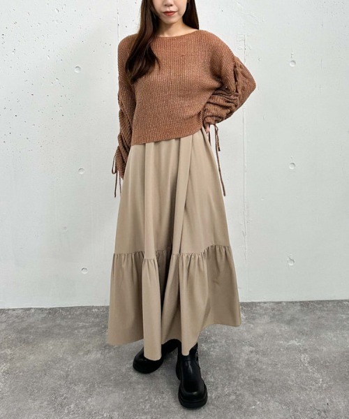 | 商品の特徴 | アイテム説明■着映えする大人っぽワンピ■LOOK掲載アイテムドロストニットとキャミワンピースがセットになった一枚。ゆったりとした透け感のあるドロストニットは単体で着ても着映えします。ラメが混ざった生地なので大人っぽさもプラスされます。袖はドロスト紐で自在に変えて頂けます。キャミワンピースはティアードデザインでボリュームが◎サラッとした素材でシンプルなデザインなのでインナーにカラーや柄のインナーを合わせても可愛く着て頂けます。ーーーーーーーーーーーーーーー透け感:ニットあり裏地:ワンピースあり伸縮性:あり光沢感:なし生地厚さ:普通洗濯方法:ニット手洗い・ワンピース洗濯可※詳しいお手入れ方法は商品についているタグをご覧くださいーーーーーーーーーーーーーーー※ご利用のモニター環境により、実際の色味と多少異なる場合がございます。… information … 欲しいitemをお気に入り登録(♡マークをclick) ・お買いのがし対策…完売itemの再入荷やラスト1点の情報をお知らせ ・欲しいitemをお得にget…price downになったらいち早くお知らせ ・スムーズ検索…ZOZOのお気に入りアイテムページで簡単checkできるから、再検索不要♪アイテム詳細サイズMEDIUMカテゴリーワンピース/ドレス,ワンピースキーワード長袖(袖丈),ロング・マキシ丈(スカート丈),無地(柄) | ||